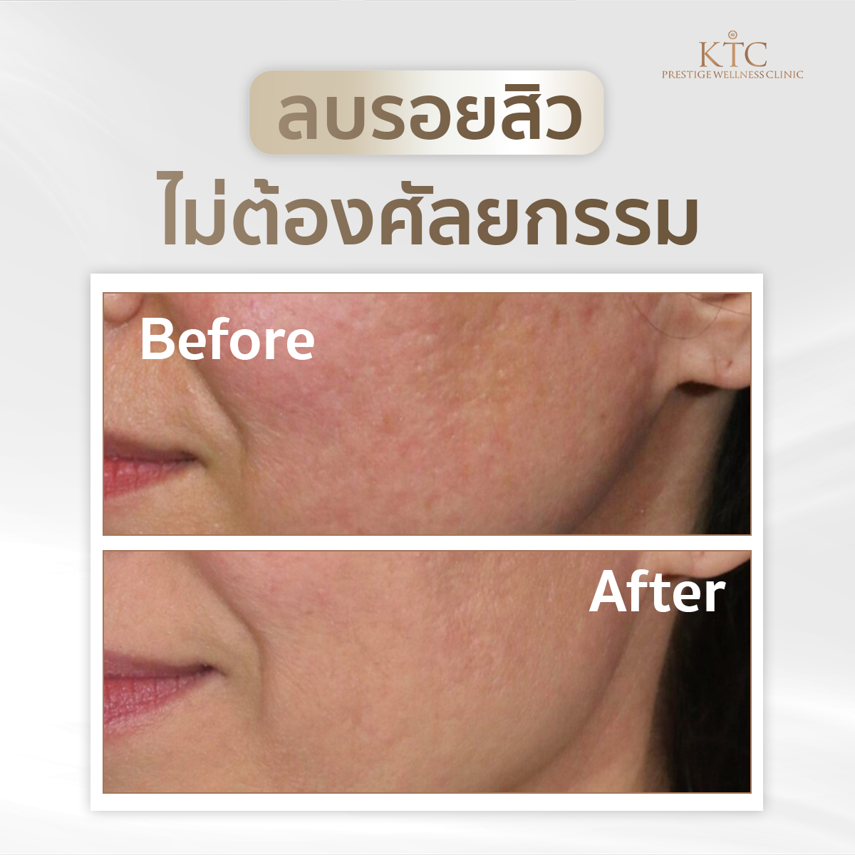 | โปรแกรม RF Microneedling | เข็มเล็ก + RF ลงผิวชั้นลึก | กระตุ้นคอลลาเจนตรงจุด | ลดริ้วรอยเล็ก รูขุมขนกว้าง ผิวเรียบเนียน |